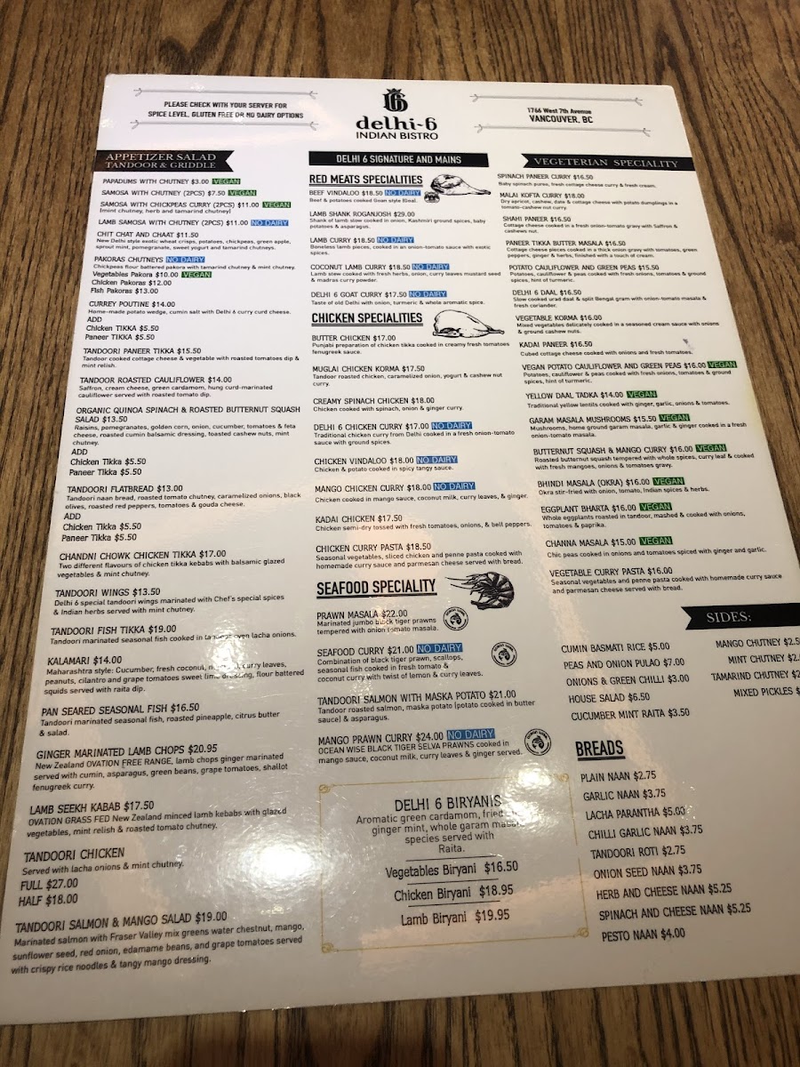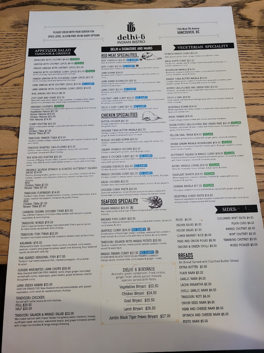 Welcome to Delhi-6 Indian Bistro, your go-to destination for authentic Indian cuisine in the heart of Vancouver. Nestled at 1766 W 7th Ave, this charming bistro offers a delightful culinary experience that transports you straight to the vibrant streets of Delhi.